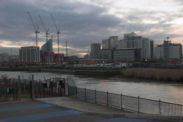 ![]() Bow Creek view towards Canary Wharf as the light fades |
