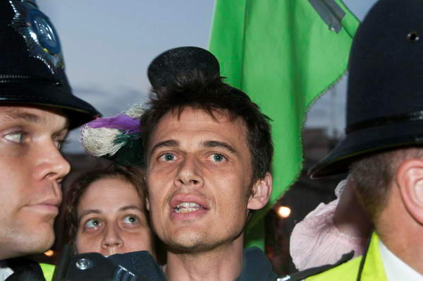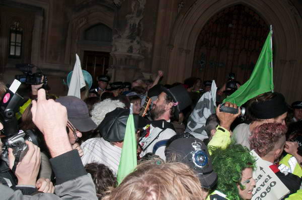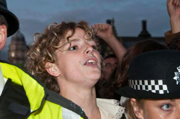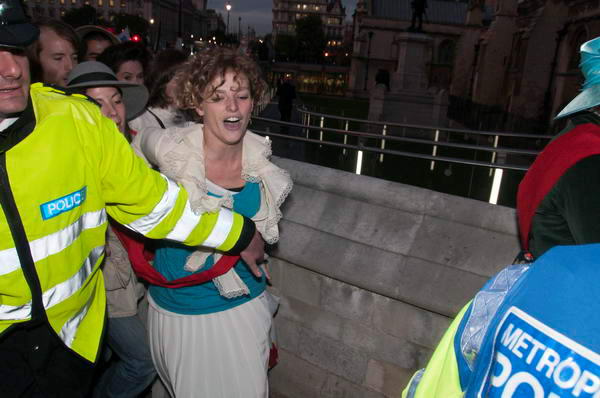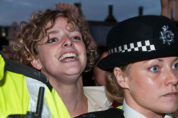 Tamsin Osmond looks jubilant as the Climate Rush reaches the Houses of Parliament