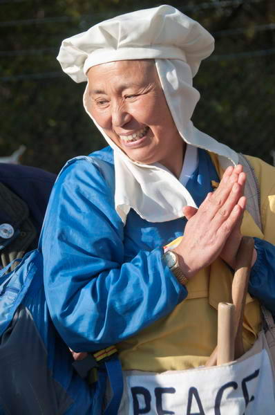 ![]() Rinky-Dink, Protester wearing PEACE flag and Police |