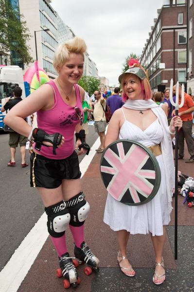 The London Gay Men's Chorus. Roll Britannia is a Roller Derby in mid-July at Earl's Court - and these are London Rollergirls