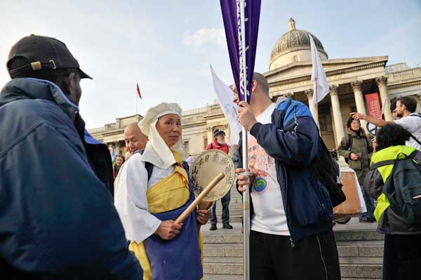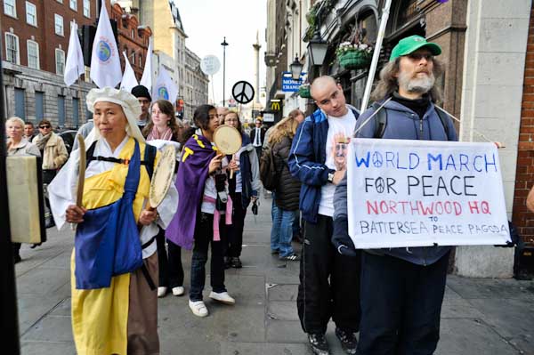 Who stopped the peace march, saying it could not walk through Trafalgar Square