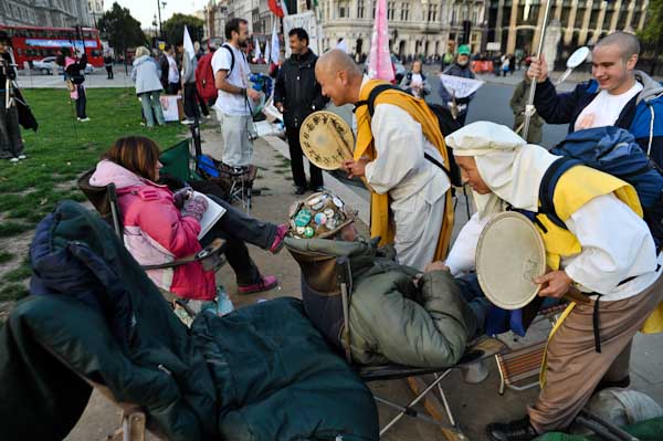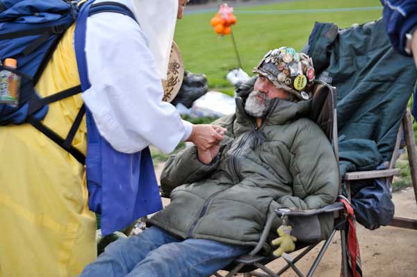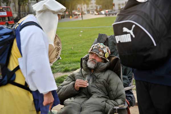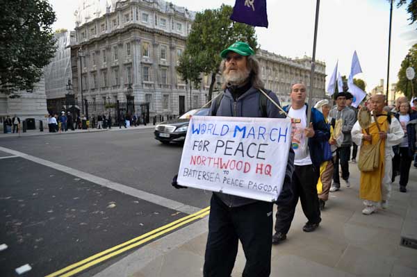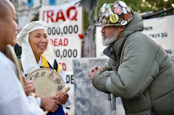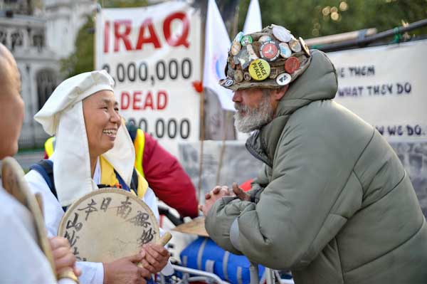 Were the marchers greeted Brian Haw and Barbara Tucker