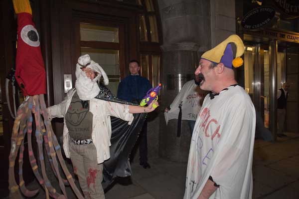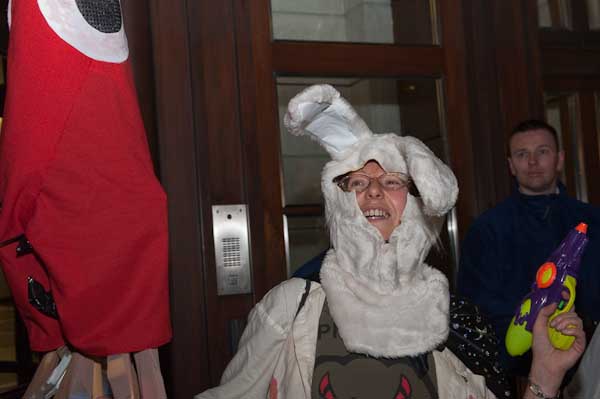 While the squid just stood there, though flopsy bunny danced around with a water pistol