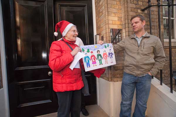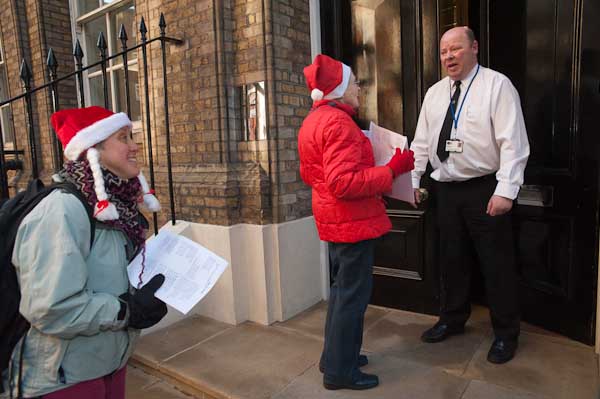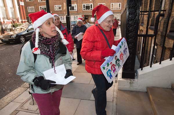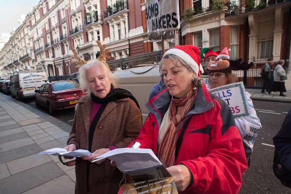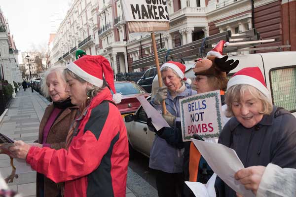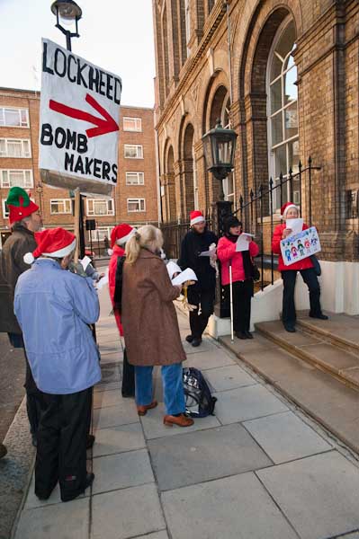 Singing anti-nuclear carols outside Manning House, where Lockheed Martin have offices on the second floor