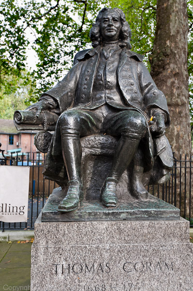 Thomas Ciram, founder of the Foundling Hospital and a gold painted statue in St George's gardens
