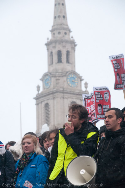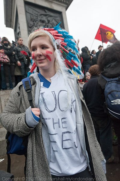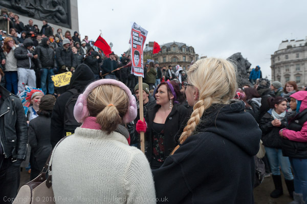 The marchers have arrived back in Trafalgar Square, joining with the others still there