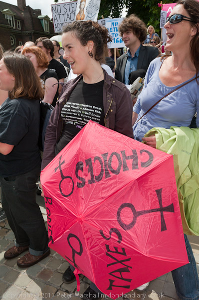 Finally I got a picture of the 'We Can Do It!' t-shirt. And a rather nice red umbrella about Choices, Taxes, Bodies