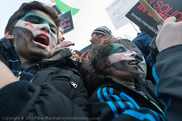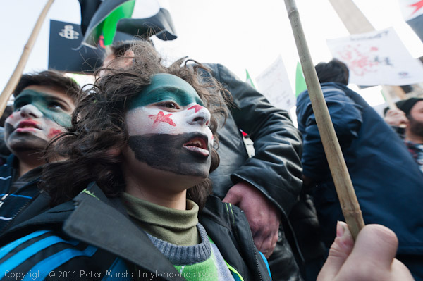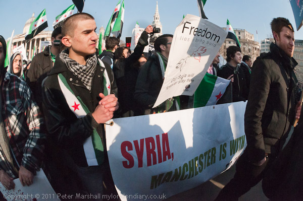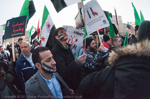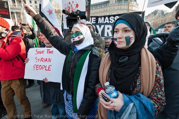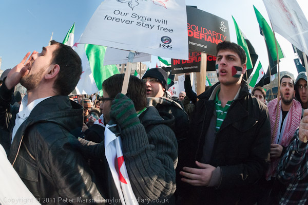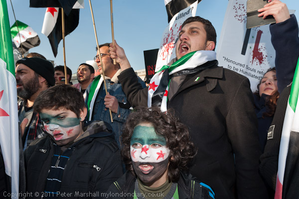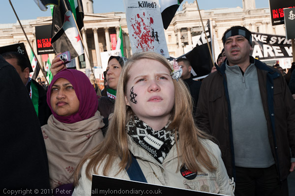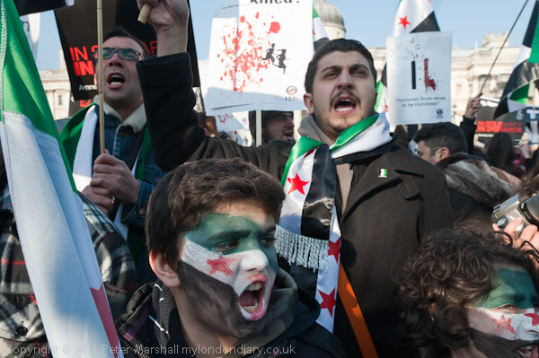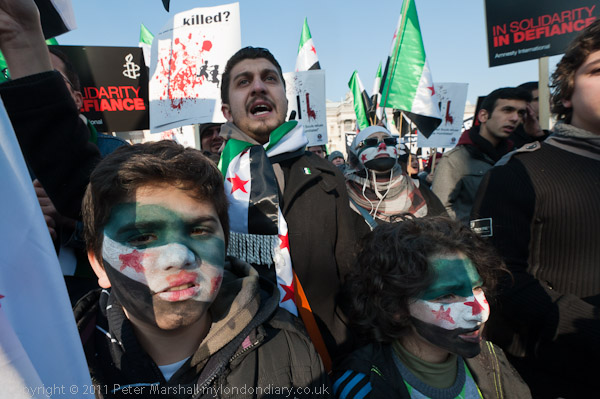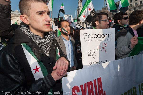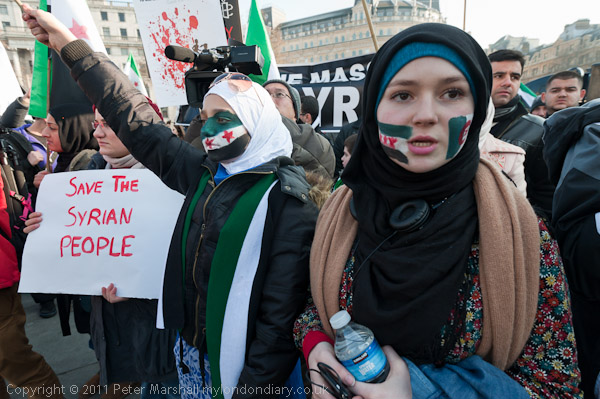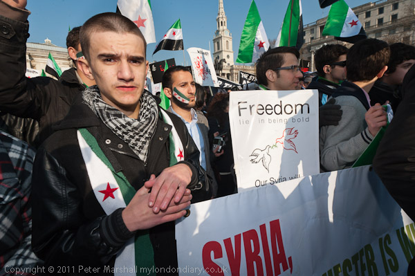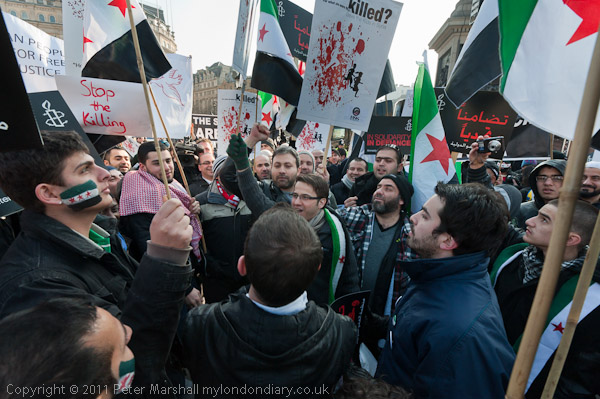 A loud and energetic Syrian protest in Trafalgar Square