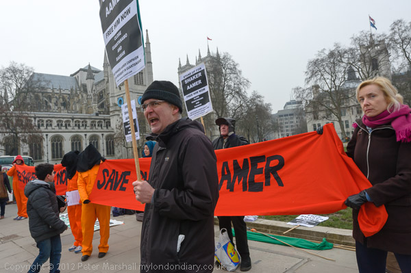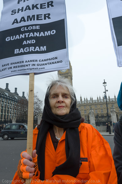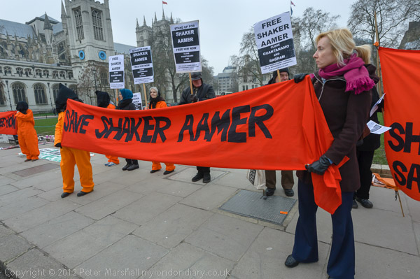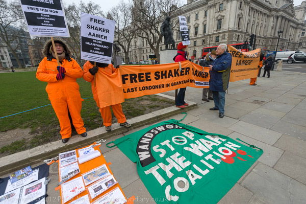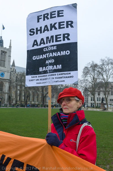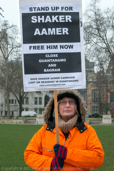 Women with 'Free Shaker Aamer - Close Guantanamo and Bagram' placards