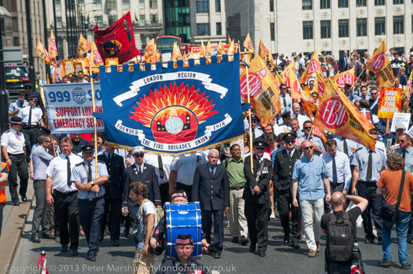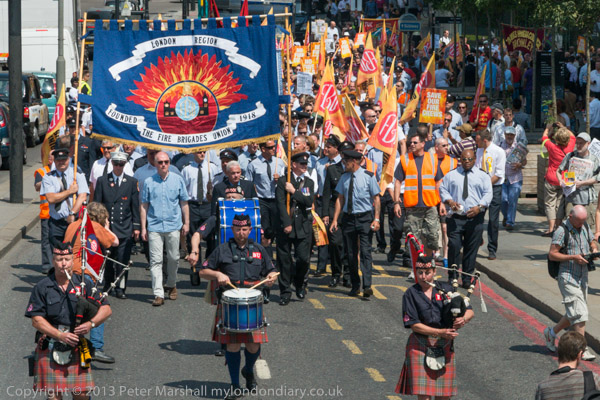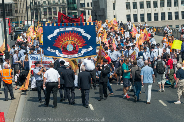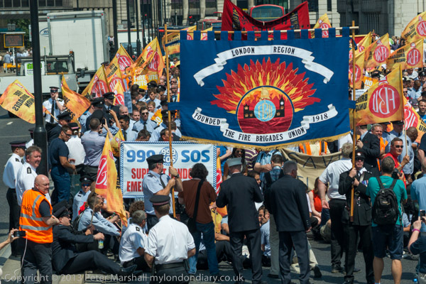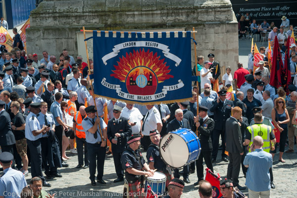 I'd gone up onto the top of the fire engine not realising I would not be able to get down until the march ended