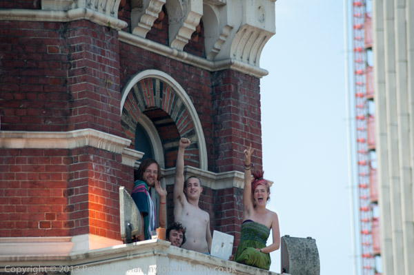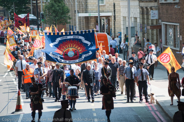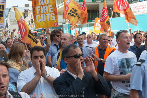 The march went by a roiundabout route to the Fire Brigade HQ where there was to be a meeting over the cuts