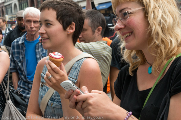 ![]() The food went to a food bank after the protest ![]() But the cakes were handed out ![]() A 'mike-check' told everyone why the protest at HSBC was taking place ![]() ![]() ![]() ![]() And most of those present tried the cakes ![]() though I think the bank staff and police refused them when offered ![]() |