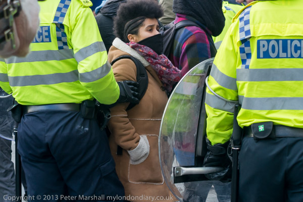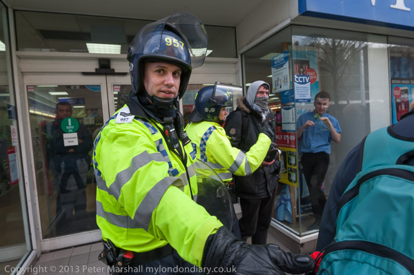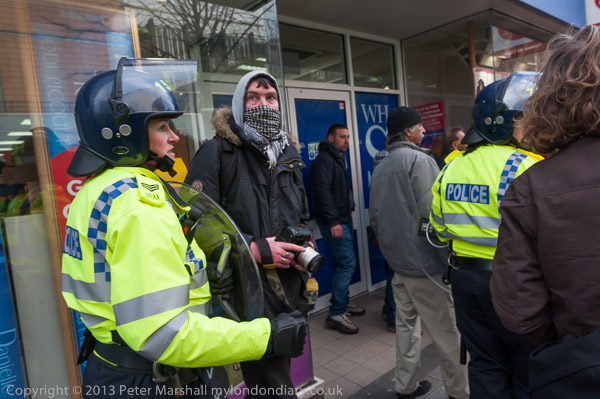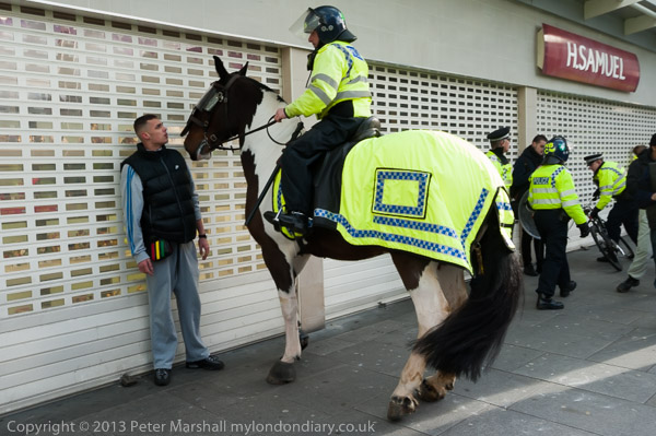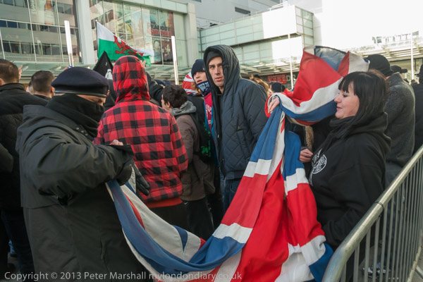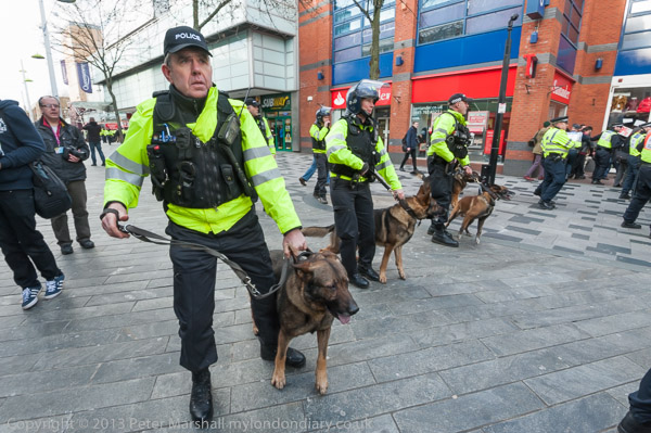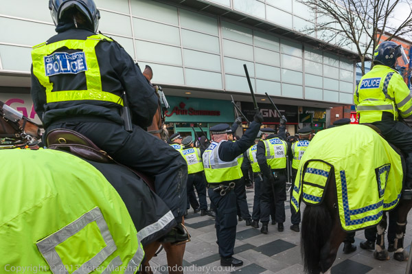 The EDL walk along the High Street after police have pushed back protesters and local people