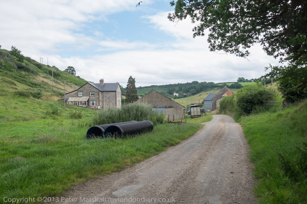 ![]() The line here was on an embankment ![]() With a bridge over a farm track ![]() The road went through between the farm buildings ![]() ![]() ![]() and soon we could see the viaduct. There is a footpath marked direct to it, but it seemed to be overgrown and part underwater ![]() So we continued along the road, taking a short cut across by a pond where the road goes on a loop ![]() Soon we got a better view of the Cannington Viaduct ![]() Quite an impressive structure |