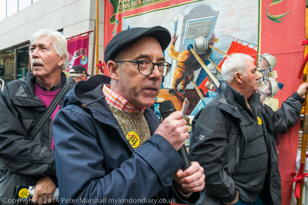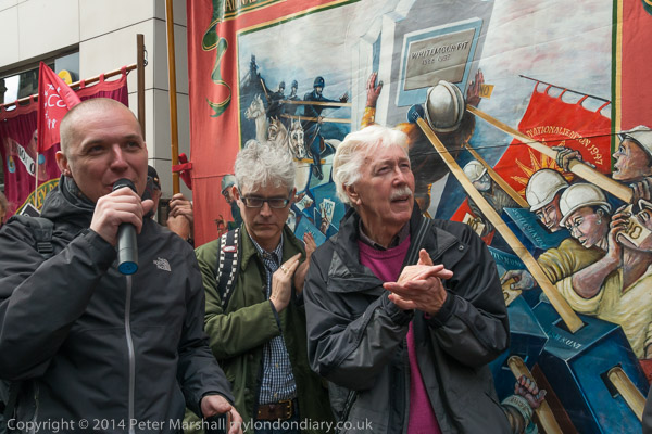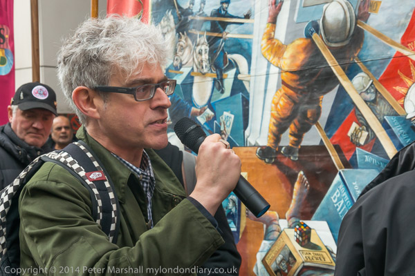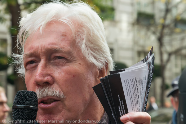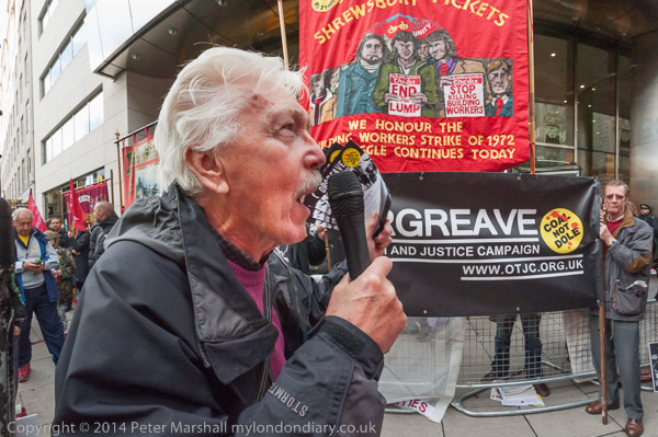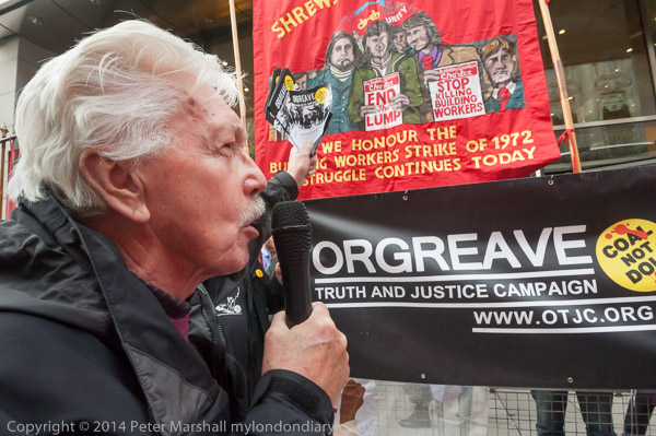 A former miner speaksat the Orgreave Truth and Justice Campaign protest outside the IPCC