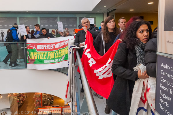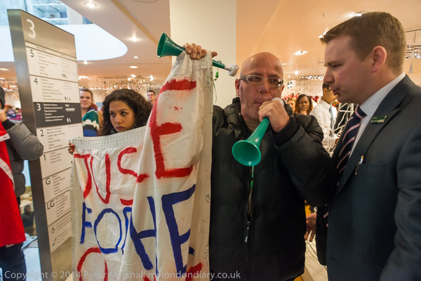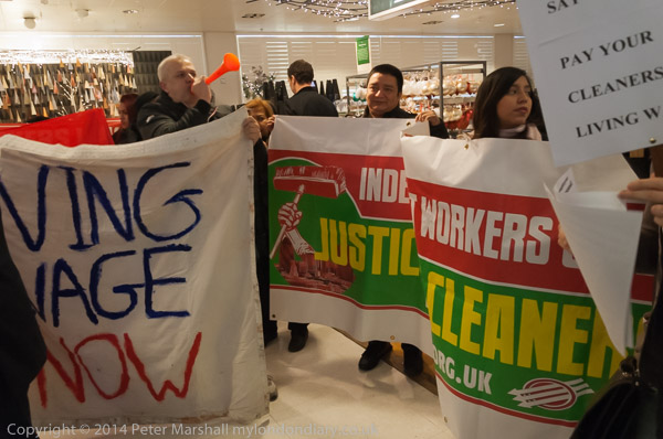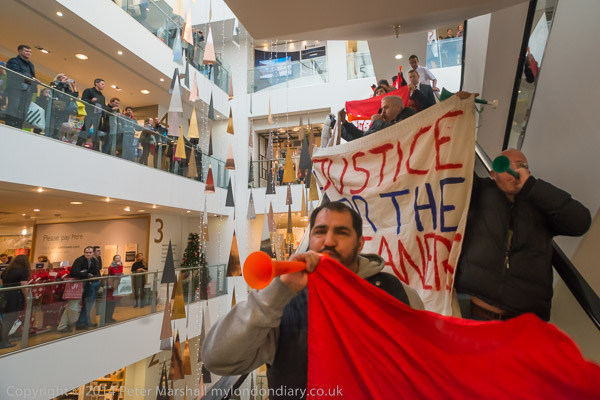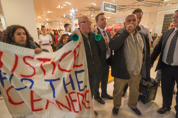 Cleaners Xmas Protest in John LewisJohn Lewis, Oxford St. Sat 13 Dec 2014 |