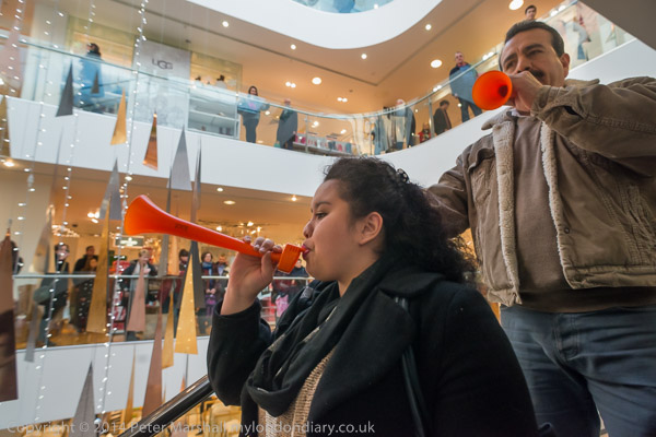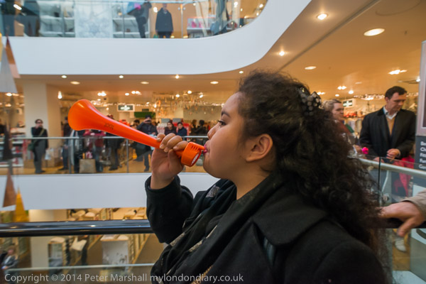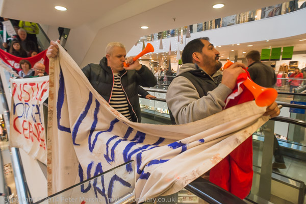 ![]() Down to the third floor ![]() Where Alberto waits for all the protesters to catch up ![]() John Lewis staff are asking the protesters to stop and to leave ![]() but the wait for a short while for everyone to get down to the third floor ![]() before continuing their progess, still blowing horns and showing their banners as the go down the next escalator ![]() ![]() ![]() ![]() ![]() |