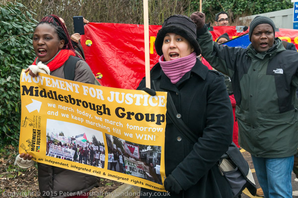 The protesters walk around shouting against the racist treatment of asylum seekers