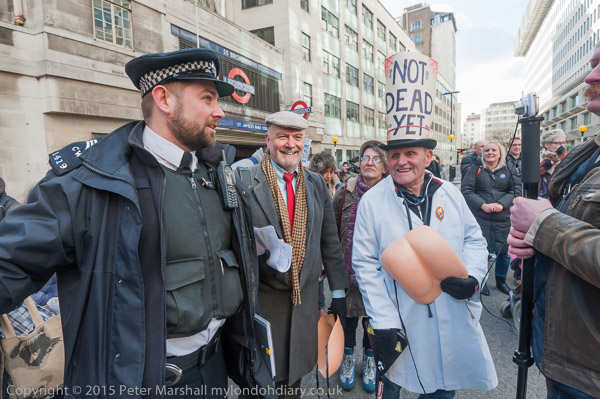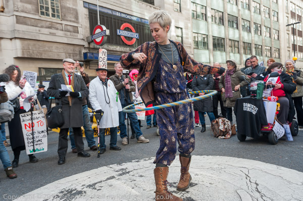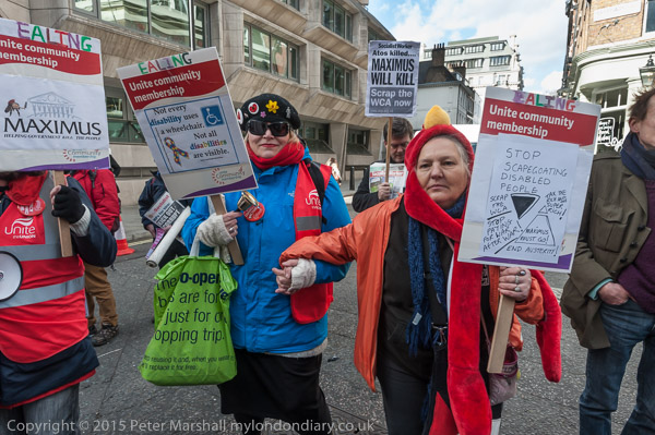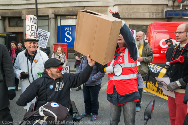 Unite Community members from Ealing support the protest, which has now moved down to the 'Circus Ring' on Petty France