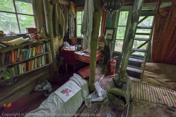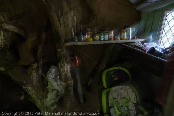 This is a home a woman built around a fallen tree