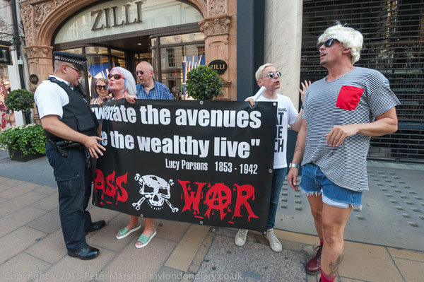 An officer tries to get Class War to move their banner away