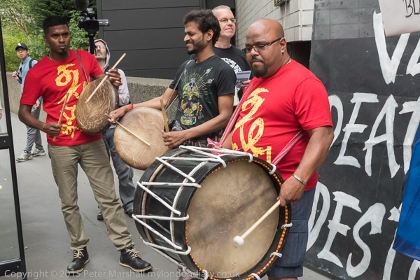 ![]() Two men in chub suits and masks of Vedanta owner Anil Agarwal and CEO Tom Albanese ![]() ![]() Tamil drummers ![]() Two men in chub suits and masks of Vedanta owner Anil Agarwal and CEO Tom Albanese fight outside the AGM ![]() 'Copper Looted, River Polluted Vedanta in Zambia' - ther operations poisoned the water causing birth deformities ![]() The protesters moved into the open yard and the fight between owner and DEO continued ![]() ![]() ![]() Chanting slogans against Vedanta ![]() |