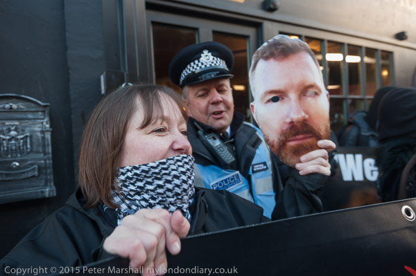 Police and protesters joked with each other outside the 'museum'. It was a peaceful and relatively restrained protest