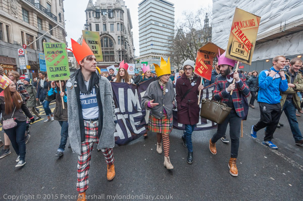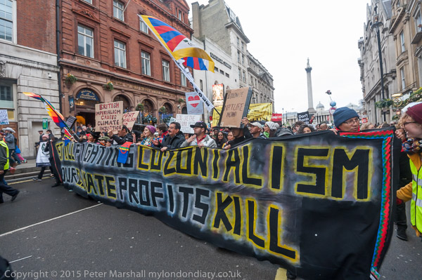 Dame Vivienne Westwood with her Climate Revolution marchers came up close behind the Global Frontlines group
