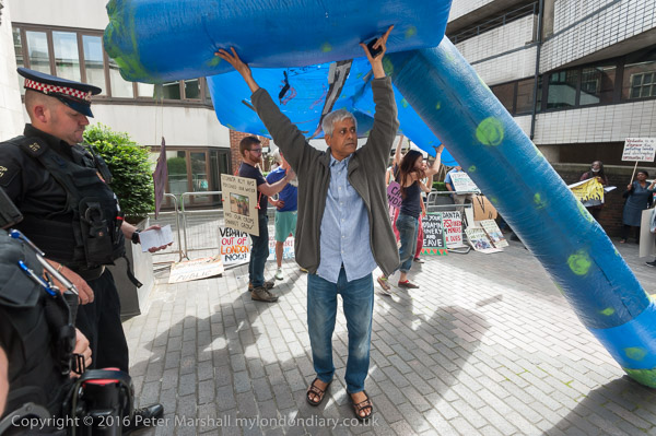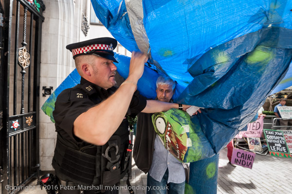 owns over 2/3 of Vedanta was escorted by police through a back way - but the protesters saw him and shouted at him