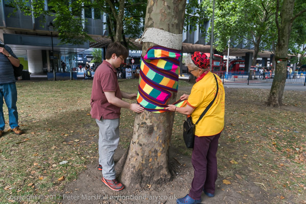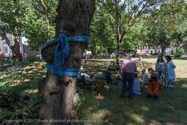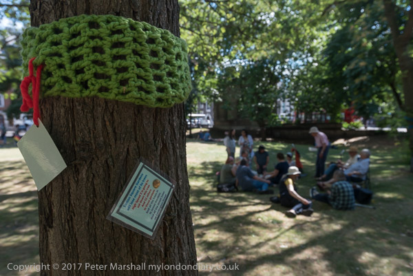 People were gathering for a meeting abot the trees and HS2 but I decided