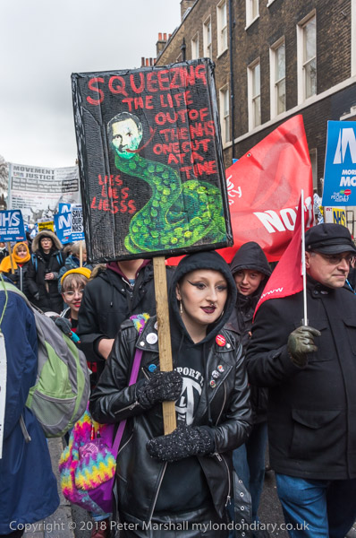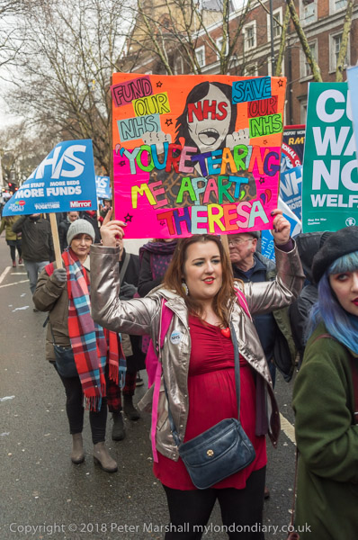 A Theresa May placard 'I'll make deep cuts to your NHS, I'll Bleed Your