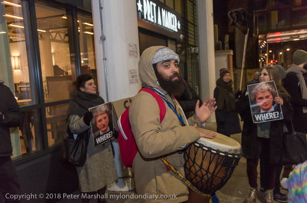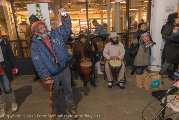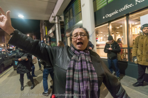 People dance and shout 'Shame on You!' pointing to Pret-a-Manger