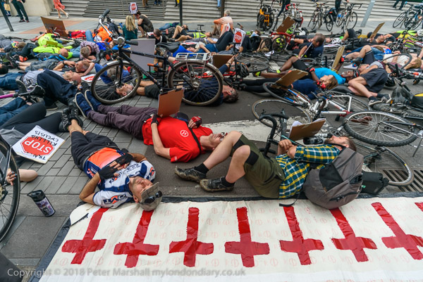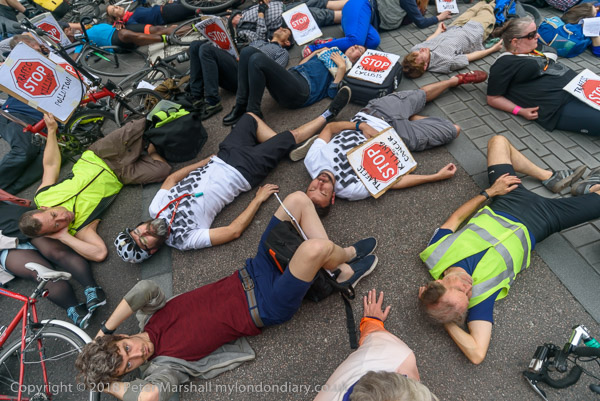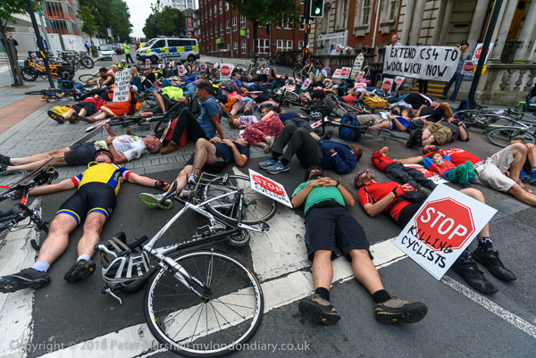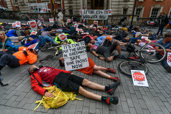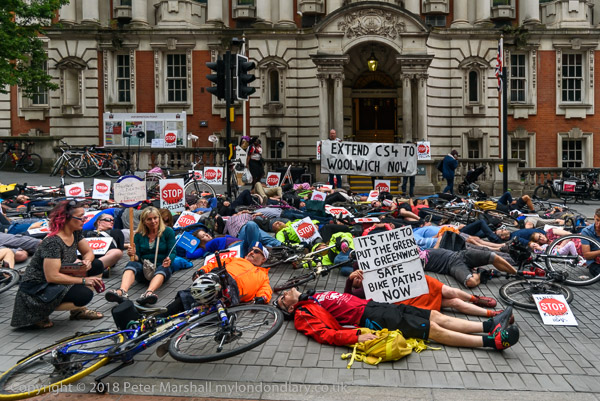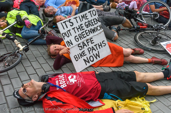 The die-in outside Woolwich Town Hall followed the deaths of 3 cyclists