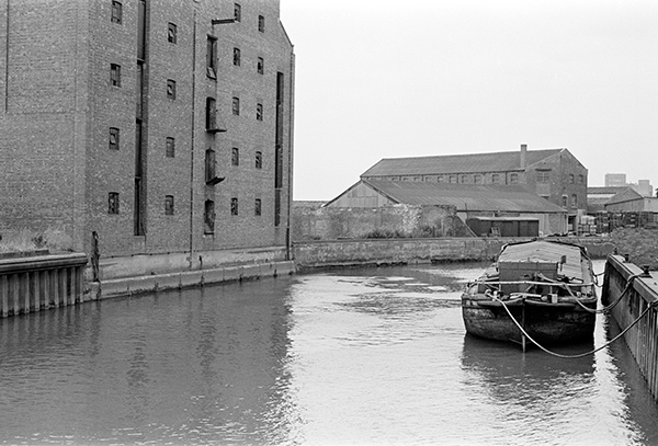 12q55: View upriver from Jenning St bridge, 1977 - River Hull
