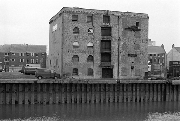 The building was probably Victorian, possibly earlier, and was in poor condition; it was demolished not long after I took this picture. Had it remained standing a few more years it would have been listed, and if it were beside the Thames in London would doubtless have been converted into luxury flats. In Hull, the site remains empty over 30 years later and has only been used since demolition for car parking.