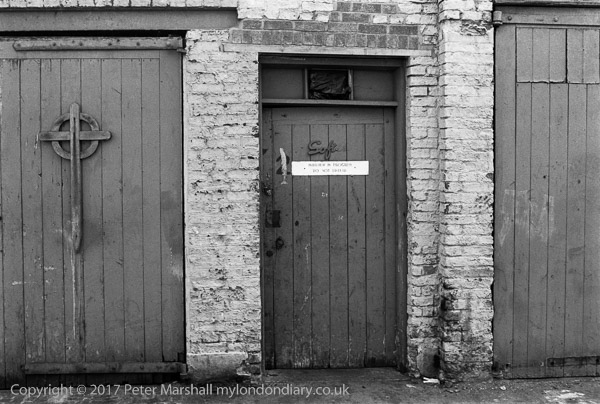 These two doors, next to each other I think down Baker St or Union St, one with a Celtic cross and its neighbour with a permanent 'Meeting in Progress' struck me as a mystery. The meeting was apparently still going on undisturbed around ten years later when I walked past. For years I couldn't decide what the name above the notice had been, though it was familiar. The letters 'Soft' remained, followed by the trace of an 'e' and another letter, perhaps a second 'e', and much later I recognised it as a part of the 'Mister Softee' ice-cream logo. This US franchise came to the UK in the 1960s and Massarella Supplies Ltd took a franchise in Doncaster through Lyons as Mr Softee UK. The door is numbered 2, with this crossed out by a rather fish-shaped daub of paint - or perhaps solidified ice-cream.