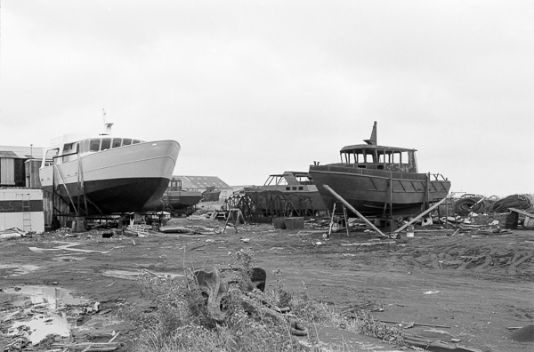 There were still a few men working in what appeared to be a graveyard for boats at the east end of Victoria Dock, in an area which had once been part of Earle's Shipbuilding & Engineering Yard.
