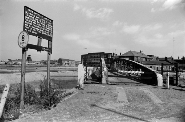 36k54: Swing Bridge, St Andrews Dock entrance and Lord Line building, 1983 - Docks