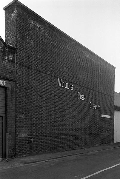 Local fresh fish merchant Wood's Fish Supply was one of many companies buying fish from the Hull Fish Market. The wall is still there, though with a small window in its impressive mass and the site is occupied by UK Auto Service. The wall is almost ten feet taller than the building behind it and is a couple of feet thick - though presumably hollow. The premises were also home to a second wholesale fish company, Moody & D'Arcy Ltd, whose name is on the board at the right of picture. This company, formed in 1948, was dissolved in 2002.