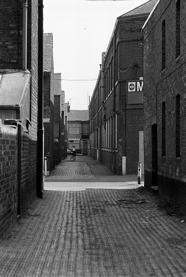 Another view of the tenfoot, with Essex Street crossing it in the foreground. Unusually this image also includes a person, though rather in the distance; at the time I tended to avoid people in the pictures of buildings and places, regarding them as sometimes diverting attention from the subject.