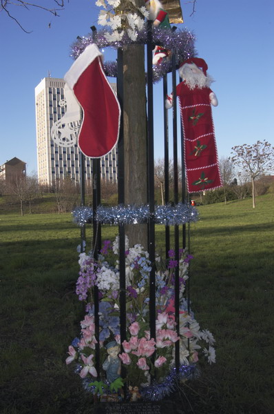 Edmonton: Flats and memorial to Patrick Dooley, who died shortly before his