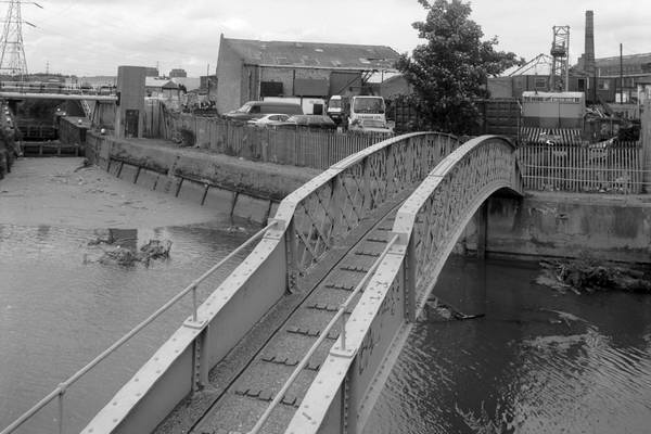 92-8e51: Footbridge, Old River Lea, with Carpenters Lock at left