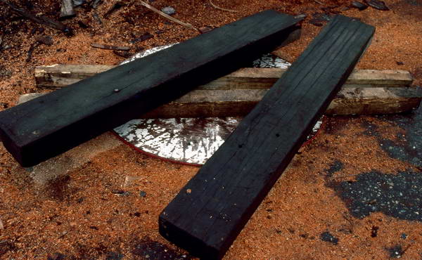 The ground was deep in sawdust around these large blocks