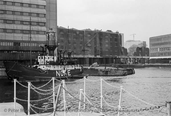 St Katharine's Dock, 1974 3k-55: Tower Hamlets, dock, ship, warehouse, office, pre-Victorian, post-war