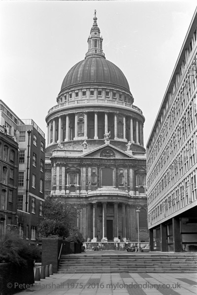 St Paul's Cathedral from Paternoster Square, 1975 5q-45: City, ofiices, church,, post-war, pre-Victorian