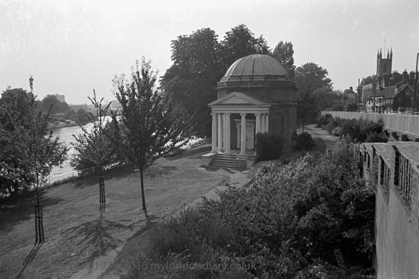 Garrick's Temple to Shakespeare, Hampton, 1975 6a-25 : Richmond, temple, Shakespeare, Garrick, lawn, river, Thames