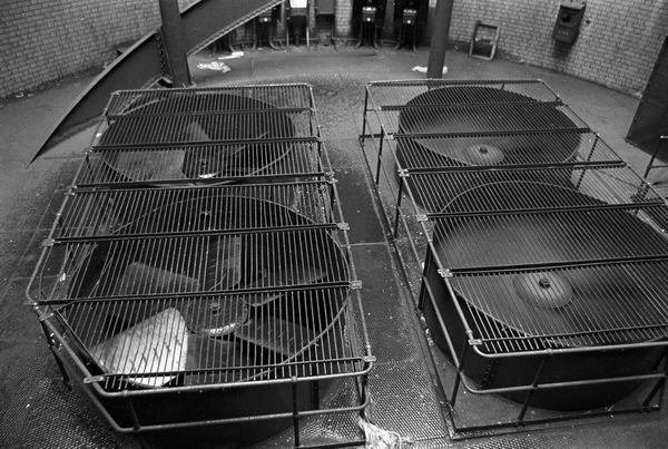 Ventilation shaft, Rotherhithe Tunnel, Rotherhithe , 1976 7q-12 : Southwark, tunnel, ventilation, fans, Victorian, post-war