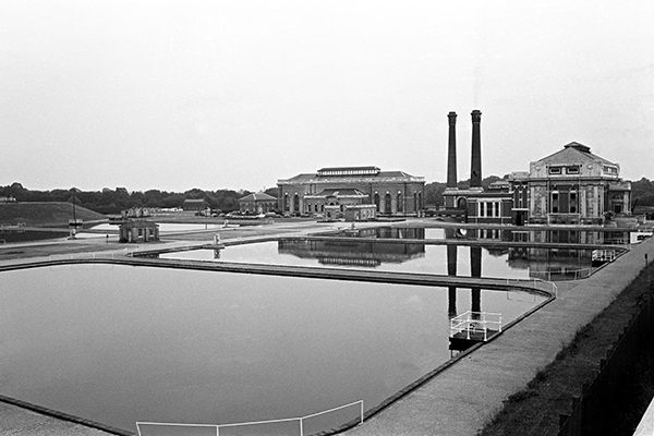 Kempton Park filter beds and water works, Hanworth, Middx, 1976 7q-41 : Richmond, waterworks, filterbeds, pre-Victorian, post-war, people