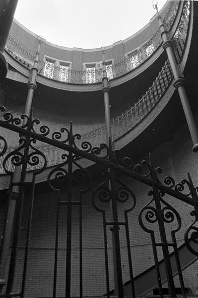 Ventilation shaft, Rotherhithe Tunnel, Rotherhithe, 1976 7v-14 : Southwark, tunnel, stair, railing, banister, Victorian,