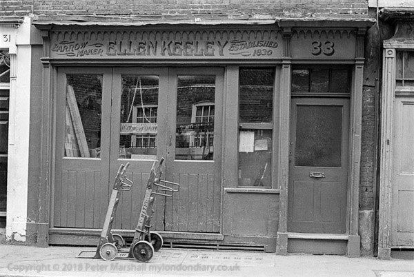Ellen Keeley barrow makers and barrows, Covent Garden, Westminster, 1978 14c41: westminster, barrows